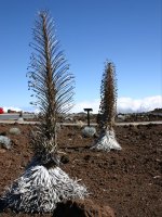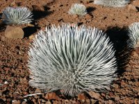 Sword (Argyroxiphium sandwicense) この公園では、Silver Sword と呼ばれるキク科の高山植物が有名です。絶滅の危機に瀕していて、レンジャーが保護しているようなので、どれがオリジナルのWildflowerであるかは不明です。数十年かけて成長し、一度花を咲かせると枯れてしまうのだそうです。この花の季節は6月〜10月とのことでした。 |