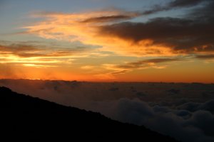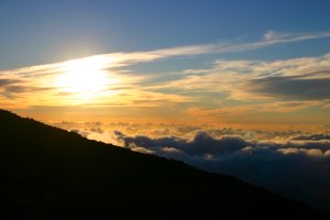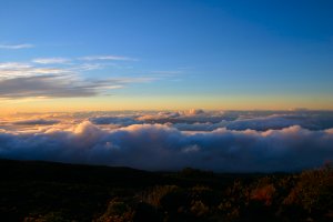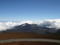 私たちがこの公園を訪れた初日には、下界の山裾では雨が降っていましたが、山頂を目指してドライブしていると、高度2000mあたりで雲を突き抜け、青空に変わりました。ハレアカラ山頂の展望台からは、噴火口やハワイ島を眺めることができました。山頂付近にはさすがに雪こそありませんでしたが、風が強かったこともあり、コートなしでは外にでられないほど寒かったです。 ここは、午後からは雲がかかることが多いようですが、山頂の方が雲より高いため、雲海を眺めることができます。私たちは雲海に沈み行く夕日を眺めました。 太平洋に浮かぶ島なのに、富士山級の高い山があること自体がすごいなと思いました。また山頂まで舗装道路があって、山頂まで車でいけてしまうのがアメリカらしいところ。さすがにガソリンの減りは早かったですけどね。 |