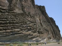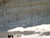 ■モードック戦争 1872年のモードック戦争では、53人しかいなかったモードック族の兵士が10倍以上はいた政府軍を、この溶岩大地に5ヶ月以上足止めさせたのだそうです。 ■ペトログリフ地区 Petroglyph Area 少し離れた地区に壁画が残っている地区があります。先住民が残した絵だと思います。 |