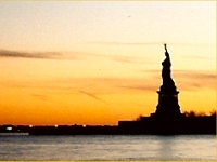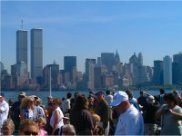 ■貿易センタービル World Trade Center 私(なお)が初めてニューヨークを訪れたのは2001年9月上旬。親友N氏と旅行をしていました。世界貿易センタービル(WTC) に、ハイジャックされた飛行機が突っ込んだわずか数日前のことでした。 リバティー島に向かう船の上からマンハッタン島を撮った写真です。ツインタワーと飛ばれていた110階建ての世界貿易センタービルが写っています。今ではもう見ることのできない風景です。私は実際にWTCの屋上展望台にも行きました。きれいな夕日を眺めたことをはっきりと覚えています。 |
