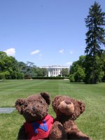 ![]() ■ホワイトハウスの芝生 大統領が手を振りながらヘリコプターを乗り降りするシーンをテレビでよく登場しますが、どうやらこのホワイトハウスの芝生が舞台のようです。彼が外に出てくるときには周囲の道路が封鎖されます。私たちが訪れた際にも、ブッシュ大統領がメモリアルデーのイベントに出かけるときに追い出されました。 |