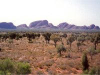 ウルル地区から車で50分ほど離れたところに、マウントオルガスと呼ばれる地区があり、36個の岩が連なっています。ここの正式名称は先住民の言葉でカタジュタと呼ばれています。 カタジュタもウルルと同じく赤い岩でですが、太陽の角度によって昼間は茶褐色に見えます。岩に近づいていくと、風の谷と呼ばれる赤岩の谷間を上っていく散策コースがあります。ここがアニメの「風の谷のナウシカ」のモデルになったといわれています。 |