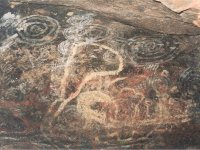 エアーズロックは一枚岩の周辺部が侵食されてできた地形です。赤色は鉄分によるもの。この一枚岩の周囲は9.5km、高さ350mとかなりの規模です。往復で2時間ほどで登山を楽しむことができますが、風の強い日や雨の日には危険なため登山道が閉鎖されます。私たちは強風のためエアーズロックに上ることはできませんでしたが、周辺の壁画を巡る散策を楽しみました。エアーズロック周辺には多くの洞窟があり、先住民の壁画が残されています。 ウルルは先住民アボリジニの聖地ということもあり、将来的には立入りが禁止されるという噂もあります。登山をしたい人は早めに行ったほうがいいかもしれません。 |